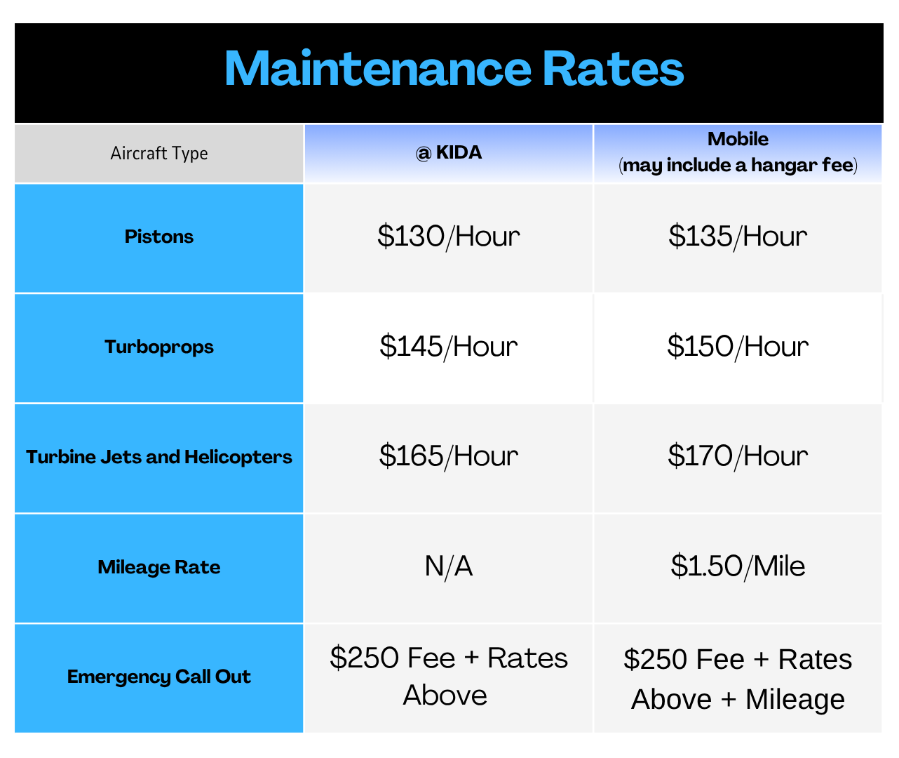 Light, medium, and heavy maintenance